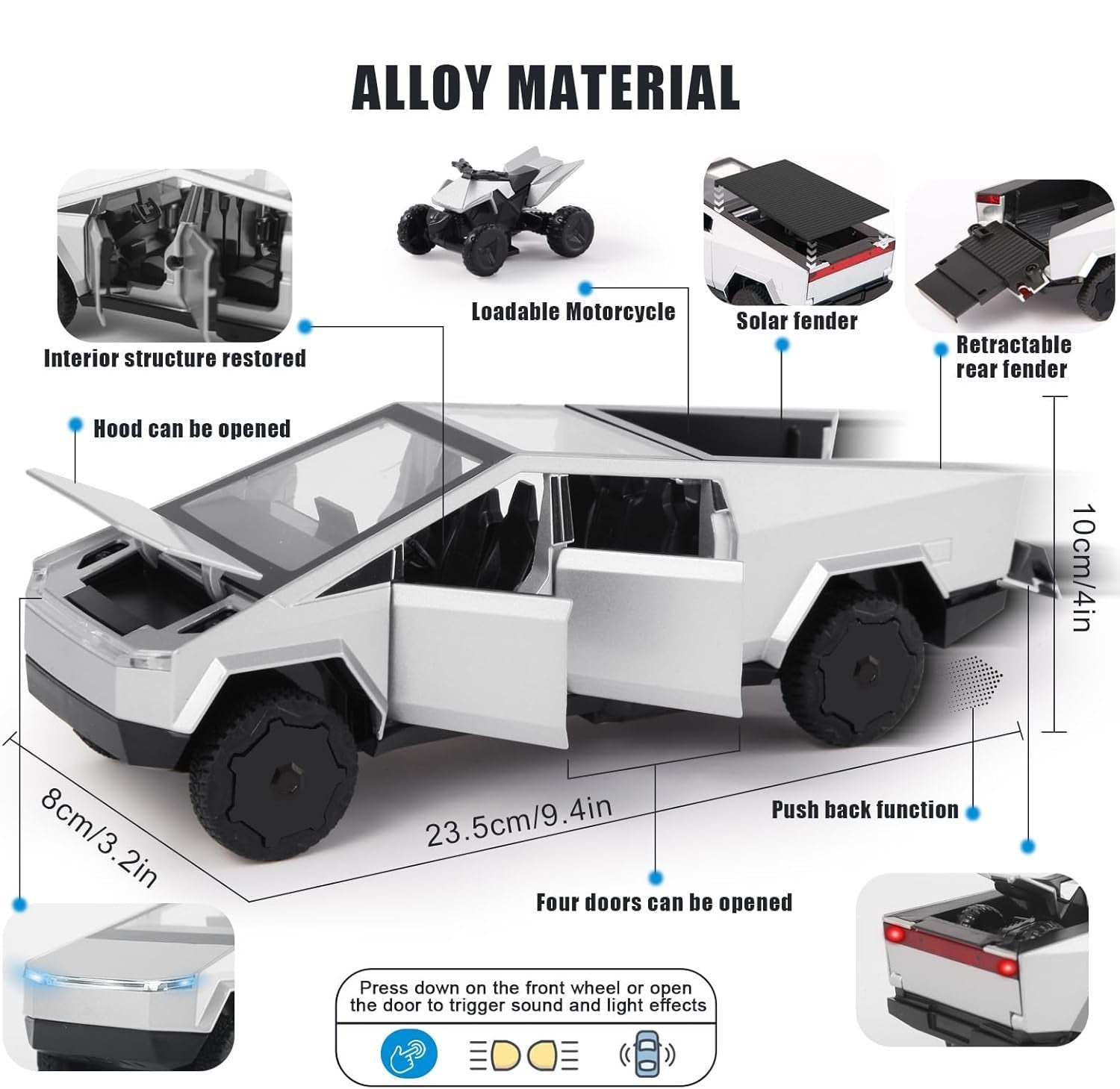 Bring the future of adventure to playtime with this premium toy vehicle set featuring a sleek electric pickup truck with trailer and matching ATV combo. This futuristic toy vehicle collection combines modern design with interactive features.