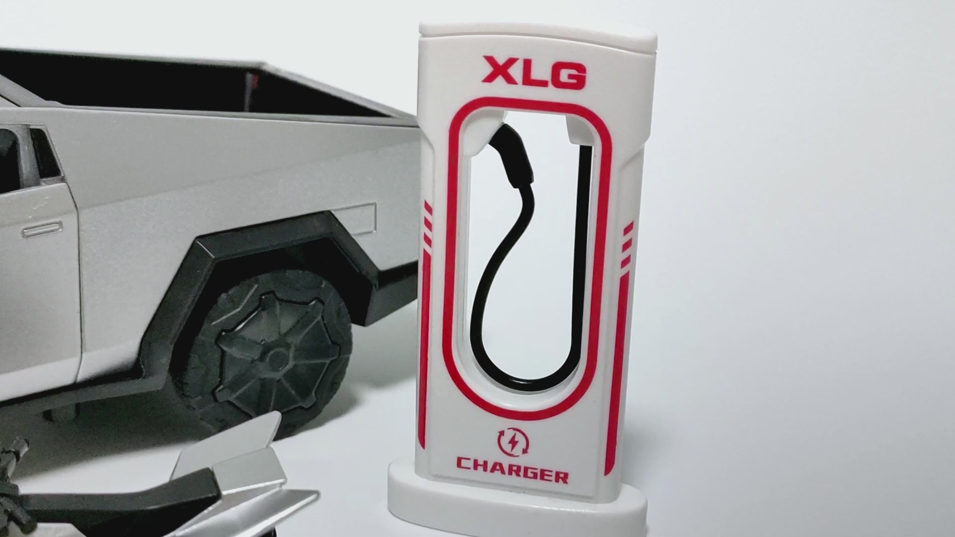 100% FUN: 4-IN-1 Toy truck with trailer camping set includes a toy pick up truck, detachable camping trailer, cyber motorcycle quad & toy charging stand - doesn't really charge, just looks cool!